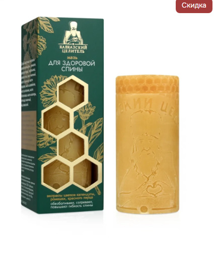 Из поколения в поколение кавказские знахари и мудрецы передавали рецепты мазей для здоровья спины, которые стали основой мази «Кавказский целитель». В составе средства масло горчичное, которое, обладая обезболивающими свойствами, обеспечивает местный согревающий эффект, повышает гибкость спины. Скипидар живичный и масляный экстракт красного перца могут помочь обеспечить отток лимфы от повреждённых участков позвоночника, обновляя и регенерируя ткани на клеточном уровне. Мазь прекрасна при защемлениях нервов спины, заболеваниях позвоночника.