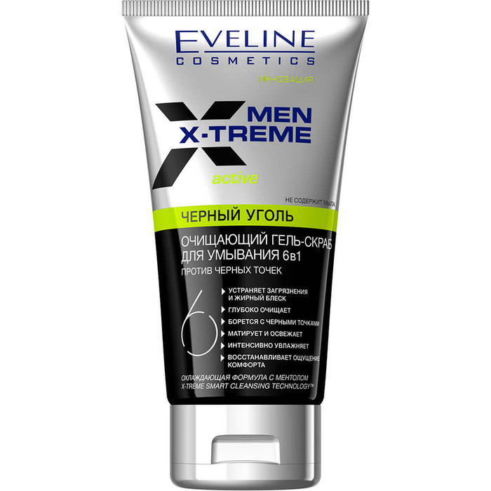 Совместные покупки Уфа Косметика и парфюмерия Мужская косметика — Men X-Treme Active Гель-скраб для умывания 6в1 Черный уголь против черных точек,