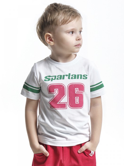 Совместные покупки Уфа Детская одежда Футболки, майки — Mini Maxi Футболка д/м "Spartans 26" (98-122см) UD 0188-5(2) бел/зеленый