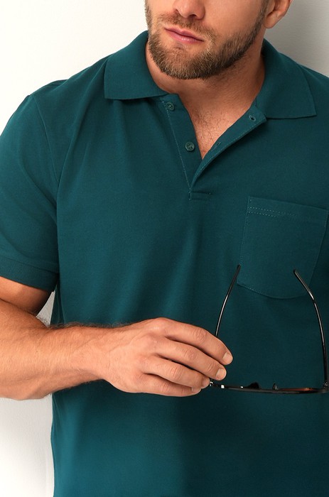 Футболка поло цвета морской волны — лаконичный фаворит мужского гардероба, который всегда к месту. Идеальный баланс между комфортом и стильным минимализмом для повседневных образов.