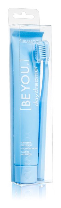В наборе отбеливающая зубная паста и ультрамягкая зубная щетка.