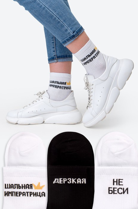 Вывязанные надписи делают образ стильным и характерным. Комплект носков из 3 пар подойдет женщинам и девочкам-подросткам. Трикотажные носочки нежно облегают ноги и не сползают при активных движениях благодаря плотной вязке. Демисезонные носочки из трикотажа для девушек будут отлично смотреться в тандеме с домашними тапочками.