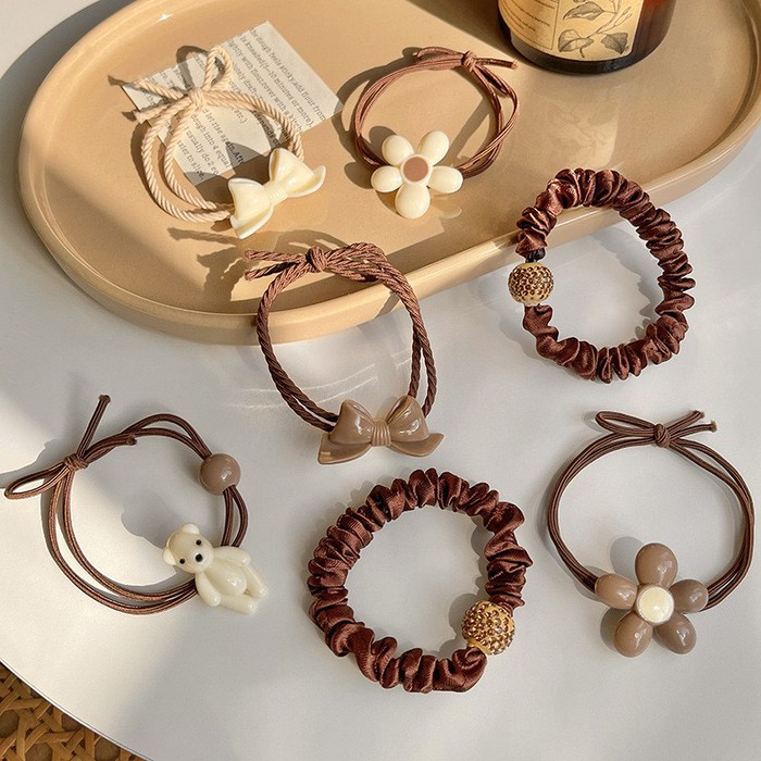 Совместные покупки Уфа Косметика и парфюмерия Прочий макияж — Набор резинок для волос с декором 7 шт. Бежево-Коричневые