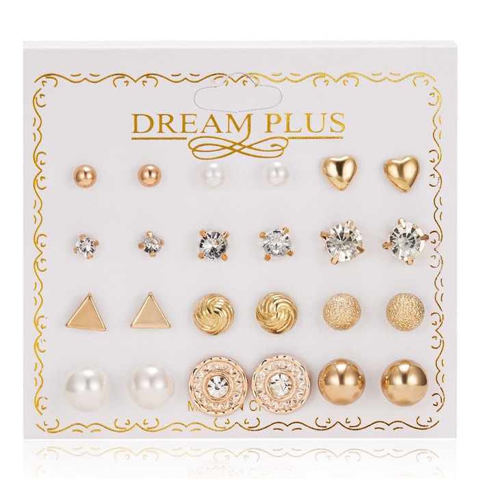 Совместные покупки Уфа Косметика и парфюмерия Прочий макияж — Набор сережек-гвоздиков 12 пар. Цвет: Золото