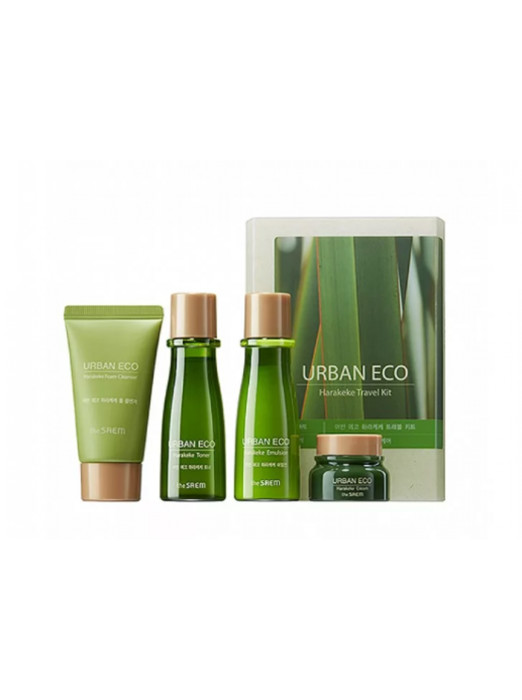 Набор увлажняющих миниатюр с экстрактом новозеландского льна THE SAEM Urban Eco Harakeke Travel Kit 25ml+31ml+31ml+8ml.В наборе 4 средства: пенка для умывания, тонер, эмульсия и крем, которые обеспечивают и глубокое тщательное очищение, и полноценный уход.