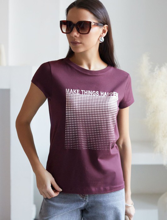 Совместные покупки Уфа Женская одежда Футболки — Нарядная футболка с блестящим принтом фольгой