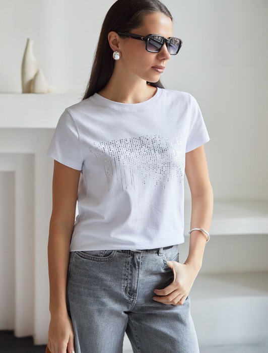 — Нарядная футболка с принтом из премиального хлопка с эластаном