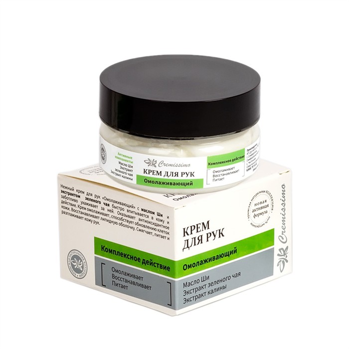 Натуральный крем для рук. Омолаживающий (с маслом ши и экстрактами зеленого чая