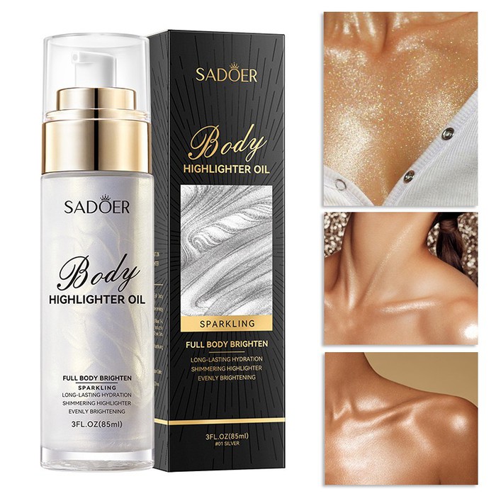 Сияющий хайлайтер для тела искрящийся с шиммером для создания эффектного и блестящего образа.Придаст вам невероятное сияние и роскошный вид.Идеально подходит для создания утонченного сияния на открытых участках тела.Не оставляет следов на одежде.