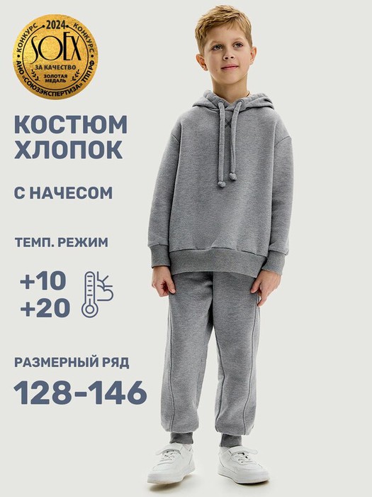Костюм СКАНДИНАВИЯ из петельного хлопкового футера с легким начесом, состоит из брюк и худи. Футер этого костюма с гладкой поверхностью и мягкой изнанкой, наличие в составе футера шерсти делает изделие более теплым, а вискозы и эластана увеличивают срок износостойкости. При эксплуатации костюм почти не мнется и сохраняет свой внешний вид спустя много стирок.