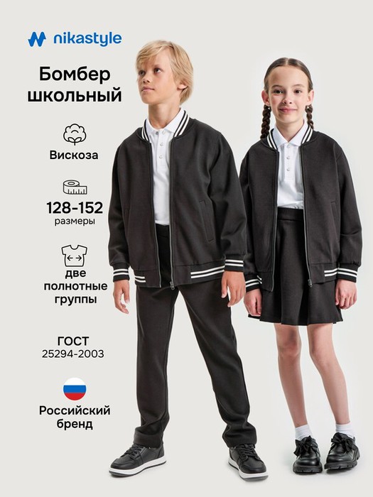 Бомберы представлены в каждом росте двумя размерами.Бомбер на подкладке– идеальное решение для ребенка, который ценит комфорт и стиль. Прочная, качественная костюмная ткань с высоким содержанием вискозы и добавлением эластана не мнется и обеспечивает удобство при носке.Функционал: - центральная застежка-молния, - прорезные карманы, - внутренний карман на левой полочке.Мы все продумали до мелочей поэтому, манжеты, горловина и низ оформлены трикотажным подвязом. Бомбер можно носить самостоятельно или собрать костюм из нашей школьной коллекции, дополнив образ брюками или юбкой-шортами. Такой комплект будет идеальным выбором для школьной формы. Рекомендации по уходу – деликатная стирка при температуре не более 30°С.