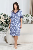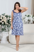 Сорочка из гладкокрашеного вискозного трикотажного полотна, слегка расширенная книзу, с короткими втачными рукавами. Полочка и спинка – с V – образными кружевными деталями по горловине.