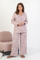 Сорочка женская из трикотажного полотна «кулирка» с набивным рисунком, расширенная книзу, без рукавов, с расширенной, углубленной горловиной овальной формы и притачной кокеткой по переду. Срезы пройм и горловины, а также шов притачивания кокетки, обработаны фасонной эластичной тесьмой с кружевным краем. Низ изделия обработан узкой обметочной строчкой.