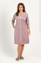 Сорочка женская из гладкокрашенного вискозного полотна, полуприлегающего силуэта, средней длины, без рукавов на широких бретелях, с разрезами в боковых швах. На полочке горловина овальной формы переходит в V-образный углубленный вырез на спинке, отделанный кружевом. Декоративным элементом является имитация «шнуровки» в виде перекрещенных между собой четырех шнурков, вытачанных из окантовки и прикрепленных к кружеву на спинке. Низ изделия и разрезы обработаны узкой обметочной строчкой, создающей волнистый край.
