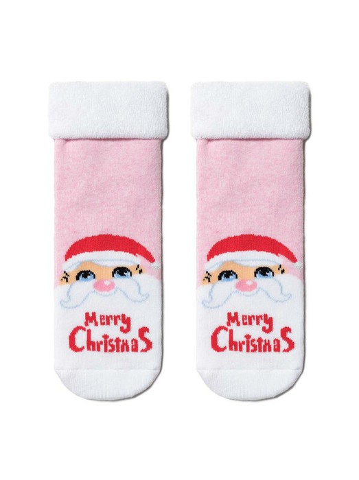 Теплые комфортные махровые детские носки из хлопка, с люрексом, с отворотом. Рисунки с новогодней тематикой. Для девочек.