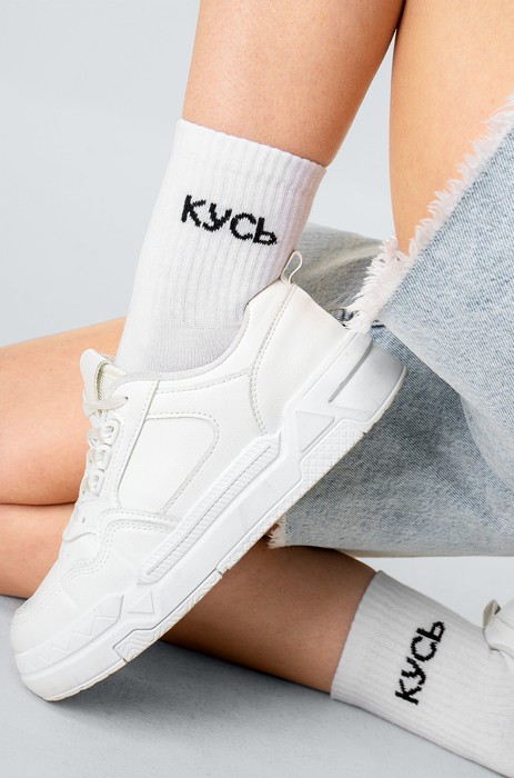 Прикольные женские носки с надписью Кусь – идеальный способ разнообразить быт и добавить в него крутую изюминку! Классный рисунок поднимет настроение и разбавит серые будни. Белые носки для женщин и мужчин выполнены из нежного хлопка, подойдут также для подростков.