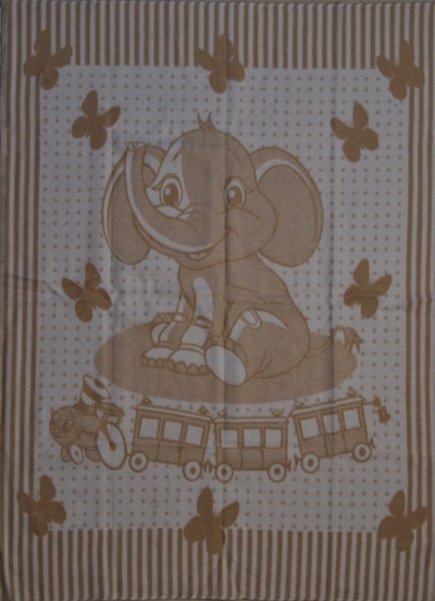 Одеяло детское байковое Слоненок с паровозиком (Бежевое)
