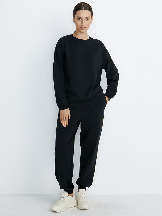 Женские брюки – джоггеры с широкими манжетами из трикотажного материала кашкорсе, боковыми карманами и поясом на резинке.