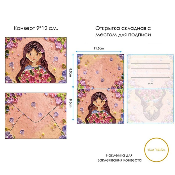 Совместные покупки Уфа Косметика и парфюмерия Прочий макияж — Открытка + конверт с 3D-рисунком ДЕВОЧКА С БУКЕТОМ