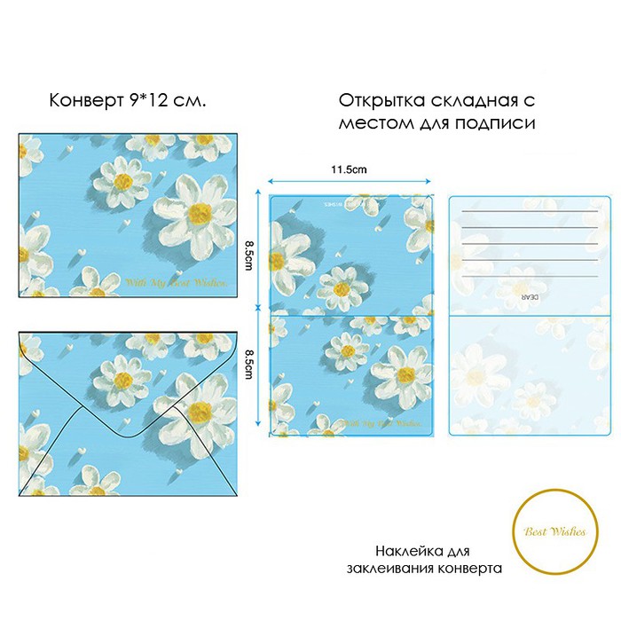 Открытка дополнена белым конвертом с наклейкой и упакована в индивидуальный прозрачный пакетик.Внутри есть место для того, чтобы вы написали пожелание.