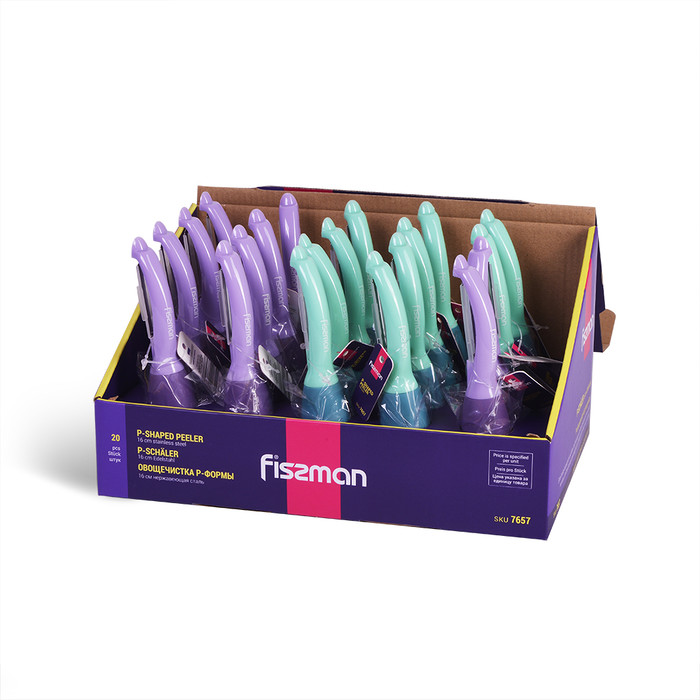 Овощечистка - нож для чистки кожуры P-формы. Ручка из прочного пластика, покрытого силиконом, не будет скользить даже в мокрых руках. Лезвие из высококачественной стали прослужит вам долгие годы. Удобная, легкая овощечистка поможет вам с легкостью очень тонко снять кожуру с овощей и фруктов.