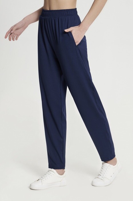 Брюки - бананы. Карманы в боковом шве. Пояс на резинке с двойной отстрочкой.