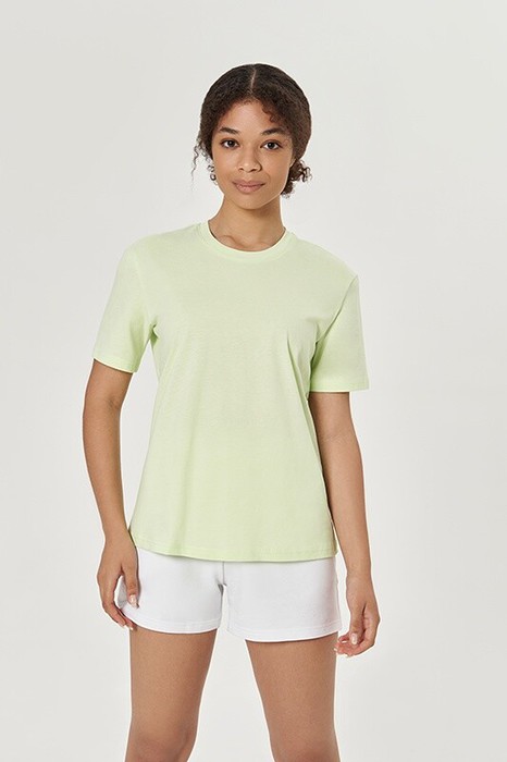 Футболка полупрелигающего силуэта, втачной рукав, горловина окантована рибаной