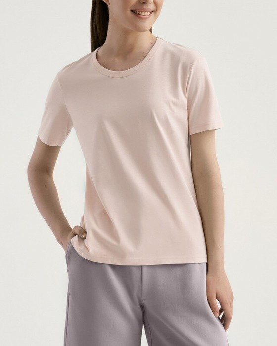 Женская футболка полуприлегающего силуэта. Горловина окантована.