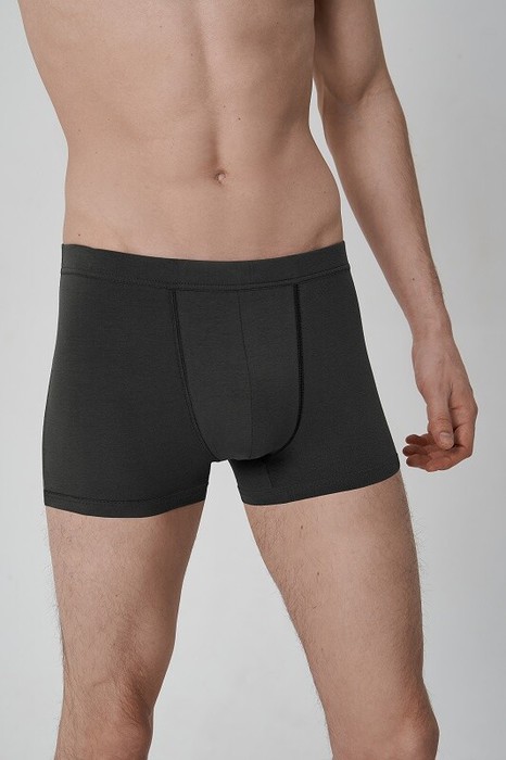 Трусы боксеры из микромодала с двойными гульфиком и ластовицей. Эластичный пояс на резинке закрыт окантовкой. Низ трусов окантован.