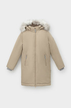 Стильное укороченное пальто полностью соответствует тенденциям подростковой моды предстоящего сезона. Прямой крой, спущенный рукав и необработанные края ткани создают свободный образ, удачно сочетающийся с любыми элементами гардероба. Декоративными деталями являются большие накладные карманы и ремешки на полочке и рукавах. Пальто изготовлено из ткани содержащей хлопок.