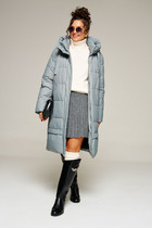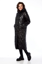 Женственное и элегантное утепленное пальто из комбинированной ткани. Полуприлегающий силуэт создан рельефами из горловины на передней части и спинке. Центральная застежка на молнию, закрытую планкой с кнопками. Карманы в рельефном шве на потайных молниях. Воротник-стойка. Рукав втачной двухшовный, длина 64 см, низ рукава можно загибать, регулируя длину. Длина изделия по спинке 85 см. Утеплитель холкон (см.описание), плотность 200, в рукавах 150.
