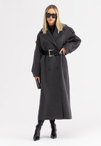 Пальто приталенного силуэта из экокожи. Центральная застежка и карманы на молнии ( молния металл серебро № 7). Воротник стойка, съемная пелерина (мех-кролик, расшитый натуральной кожей, окрас под шиншиллу) , пристегивающаяся на молнии. Съемный завязывающийся пояс. Длина изделия по спинке 92 см, длина рукава 63.5 см утеплитель холкон (см.описание), плотность 150.