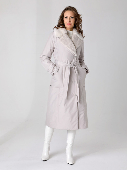 Длинное пальто прямого силуэта с втачными рукавами и двубортной застежкой на кнопки. Это демисезонное пальто подходит для женщин и девушек любого возраста. Свободный прямой силуэт можно легко изменить с помощью съемного завязывающегося пояса. Воротник - "английского" вида с возможностью фиксации лацкана на пуговицу. Карманы - втачные по типу накладных. Есть внутренний кармашек на молнии. Сочетание двух видов эко-меха на воротнике и лацканах придает изделию элегантный вид, что подчеркнет Вашу женственность и стильность. Мех хорошо выдерживает обычную стирку и не меняет внешний вид после высыхания. Плащевая ткань имеет водоотталкивающую пропитку, которая выдержит небольшой осенний дождь или снег. Хорошо зарекомендовавший себя холлофайбер плотностью 200 гр/м защитит от холода и ветра. Подкладка в изделии - в мелкую полоску.