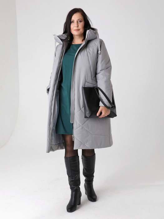 Зимнее пальто прямого силуэта с застежкой на двухзамковую молнию, которая позволяет регулировать ширину шага при необходимости. Воротник - уютная стойка, переходящая в капюшон. Комфортности придают удобно расположенные карманы на кнопках. Есть внутренний кармашек на молнии. Длину втачного рукава можно корректировать отворотом. Модель такого пальто средней длины подходит для девушек и женщин разных возрастных категорий. Плащевая ткань, из которой выполнено изделие, имеет водоотталкивающую пропитку, выдерживающую небольшой дождь, снег и ветер. Хорошо зарекомендовавший себя утеплитель "Холлофайбер", плотностью 300г/м, защитит от холода. Подкладка в изделии выполнена из ткани в мелкую полоску.