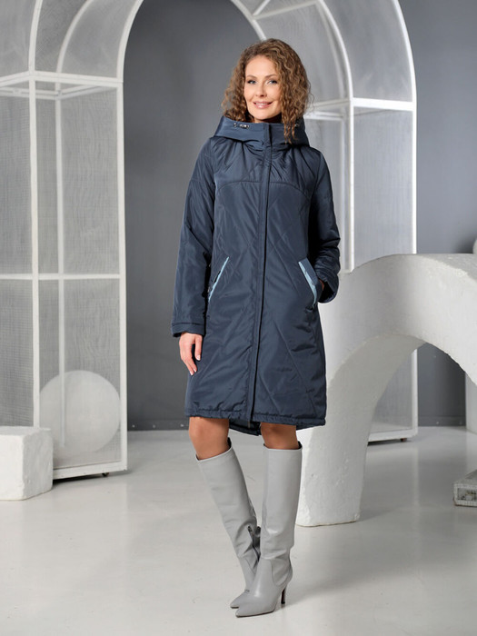 Утепленный плащ прямого силуэта с ярким акцентом в виде контрастной отделки подходит для женщин и девушек разных возрастных категорий. Застежка - на двухзамковую молнию, что позволяет регулировать ширину шага. Воротник - стойка, переходящая в капюшон. Удобно расположенные карманы застегиваются на кнопку. Есть потайной карман на молнии. Длина втачного рукава регулируется отворотом. Плащевая ткань имеет водоотталкивающую пропитку, которая выдержит небольшой дождь и ветер. Подкладка в изделии выполнена из ткани в мелкую полоску.