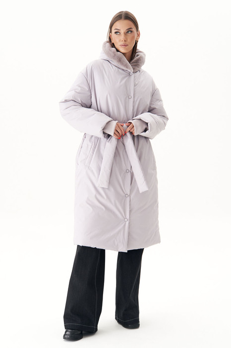 "Элегантное, женственное и эффектное. Это пальто было популярно и в прошлые сезоны, но в коллекции 24-25 г. занимает одно из первых мест. Современный, свободный силуэтс заниженной линией плеча, втачной рукав, расширенный в области оката, центральная застёжка на тесьму молнию и цельнокроённую с полочкой планку, растёгивающуюся на отдельные кнопки, воротник-капюшонс отделкой мехом.