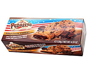 Это печенье в американском стиле с шоколадной крошкой от Papagena имеет мягкую сердцевину с добавлением шоколадного крема. Положите печенье в микроволновую печь на 10-15 секунд и запейте его теплым стаканом свежего молока. Печенье с шоколадной крошкой 16% и шоколадно-кремовой начинкой 21%. Страна: Австрия.