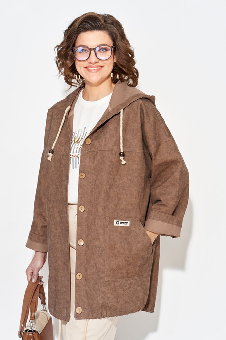Женская джинсовая парка-ветровка, выполнена из 100% хлопка с эффектом водоотталкивающей пропитки. Удлиненная джин совка силуэта оверсайз очень практична и удобна, смотрится необычно и элегантно.  Модель с объемным капюшоном является очень популярной в предстоящем сезоне. Застежка центральная на петли и пуговицы. Рукав длинный на спущенном плечевом поясе обеспечивает идеальную посадку по фигуре. По полочке расположена кокетка и накладные карманы с отделочными строчками.  Спинка с центральным швом, переходящим в разрез. Низ изделия фигурный с утяжкой на шнуровку с наконечниками.