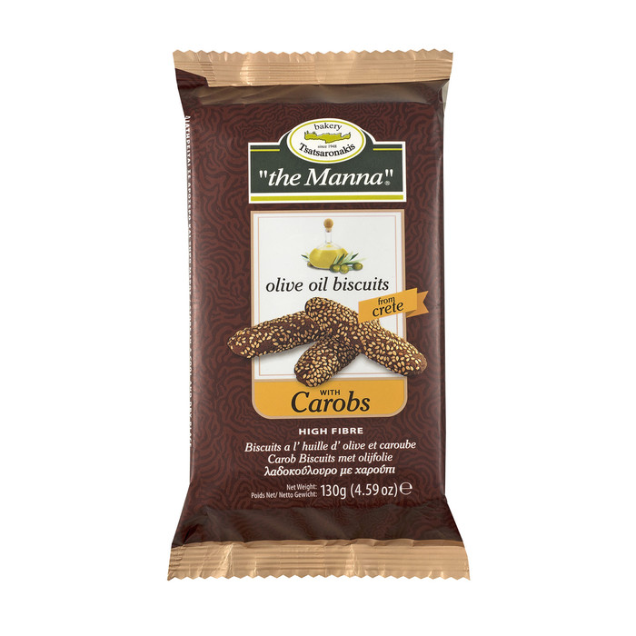 Печенье c оливковым маслом и плодами рожкового дерева сохраняет все характеристики классического печенья с оливковым маслом. Кроме того, они содержат рожковую муку и рожковые бобы, произведенные на Крите. Использование этих двух ингредиентов в сочетании со всеми вышеперечисленными, повышает пищевую ценность вне всякого сравнения по сравнению с обычным печеньем. Рожковое дерево является богатым источником кальция, железа, магния, а также многих антиоксидантов. Здоровый способ насладиться печеньем!