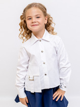 Школьная блузка для девочки свободного кроя. Блузка детская с классическим отложным воротничком. Удобная центральная застёжка на кнопки, имитирующие пуговицы — ребёнок легко и быстро застегнёт и расстегнёт. Фишка модели — глубокие складки, заложенные в верхней части переда. — стильная деталь, выгодно отличающая эту модель от банальных однотонных блузок. В составе ткани преобладает качественный хлопок — блузка в школу для девочки мягкая, воздухопроницаемая и комфортная для ребёнка. Полиэстер помогает не терять форму и отличный внешний вид — изделие прослужит не один сезон. Для школьных рубашек мы используем сорочечную ткань, плотностью 100гр/м2. Школьная блузка лаконичного дизайна, без принта, её легко сочетать с различными брюками, юбками, сарафанами. Красивая и практичная блузка белая для девочки — подходит как для повседневной носки, так и для более торжественных случаев. Помните о правильном уходе за изделием: рекомендуется стирать при температуре не выше 30 °C, без предварительного замачивания, с изнанки. Это поможет сохранить качество и цвет блузки на долгое время.