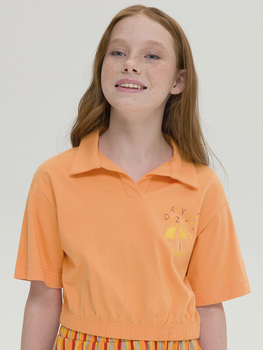 Укороченная футболка-поло для девочки - тренд сезона. Выполнена из хлопкового трикотажа. Не вызывает аллергии и отлично пропускает воздух. Кроп-топ свободного покроя со спущенным плечом и воротником-апаш с расходящейся планкой - для самых модных девочек. Низ изделия присобран на резинку и образует напуск для создания легкого объема. Ненавязчивый принт задаст настроение. Перевод "ленивый день". Отлично сочетается с брюками, юбками и шортами. Дополнит гардероб любой девочки и сделает ее образ стильным и уникальным.