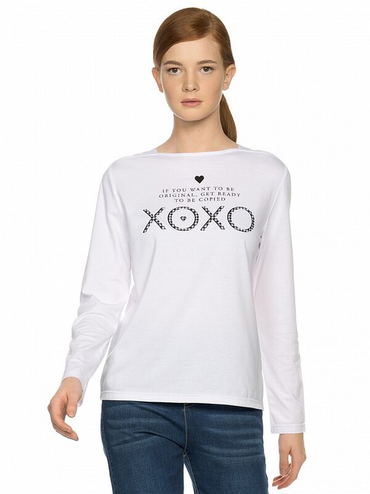 Джемпер женский из мягкого тонкого трикотажа прямого кроя с почти квадратной формой горловины за счет подкройных плечей. Втачной рукав. Стойкий эластичный glossy rubber принт. Перевод Если хочешь быть оригиналом будь готов к тому, что тебя захотят копировать.