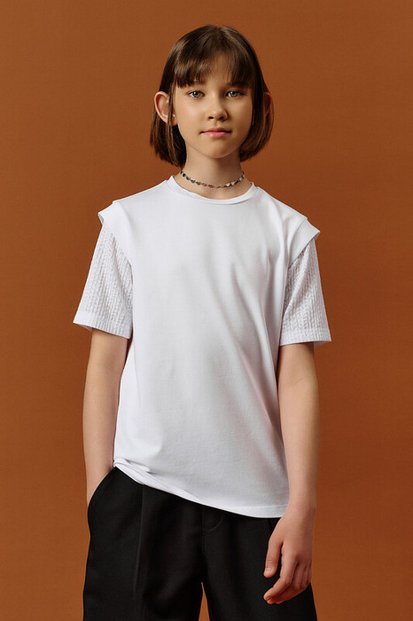 Эта футболка станет настоящей находкой для школьного гардероба! Выполнена из приятного к телу хлопкового трикотажа с добавлением эластана — материал дышащий, мягкий и слегка тянется, обеспечивая комфорт в течение всего дня.