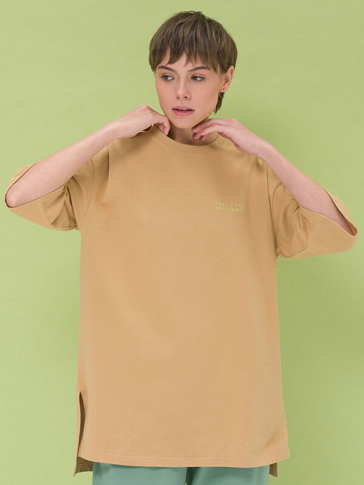 Женская футболка оверсайз с удлиненными прямыми рукавами. Натуральный хлопок и 5% эластана в составе – тело дышит, ткань меньше мнется и дольше сохраняет аккуратный внешний вид. Перепад длины по низу, разрезы по бокам для максимальной свободы движений и ощущения легкости. Крупный текстовый принт на спинке развернут по вертикали – оригинальная фишка модели. Маленький принт спереди как легкий акцент на позитивное мышление. Модель идеальна на каждый день, подходит для спортивного стиля и активного отдыха.