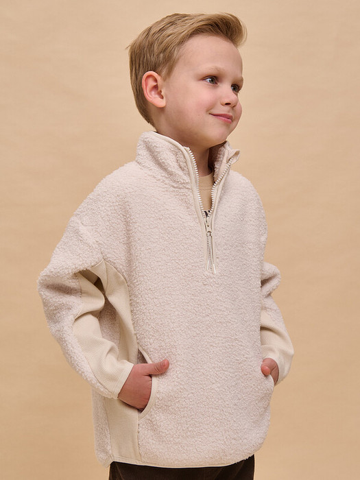 Детская толстовка на мальчика выполнена из мягкого бербер-флиса (фактура «барашка»). Вставки по бокам и рукавам из футера с начесом. Сочетание материалов с разной фактурой — один из модных трендов. Джемпер оверсайз-силуэта со спущенным плечом и увеличенной проймой подарит ребёнку комфорт и свободу движения.  Толстовка с воротником-стойкой защищает шею от холода и ветра, нет необходимости дополнительно надевать шарф. По переду застёжка на короткую молнию, что актуально в этом сезоне. Тканевый стоппер защищает подбородок от зажима молнией. Низ изделия фигурный, спинка слегка длиннее переда, рукава книзу заужены. По переду фигурные карманы — удобно пользоваться. Воротник, застёжка, низ толстовки, рукава и карманы окантованы эластичным пайпингом, что помогает изделию сохранять форму и при этом не растягивается при носке. Джемпер однотонный, без принта. За ним просто ухаживать. Одежда из бербер-флиса тёплая, лёгкая, мягкая, просто стирается и быстро сохнет, не выгорает и не скатывается, надолго сохраняет первоначальную форму. Вставки из 95% высококачественного хлопка. Он мягкий и дышащий. 5% эластана не даёт терять форму, растягиваться. Толстовка на молнии без капюшона выполнена в стильном и практичном зеленом цвете. Она легко комбинируется с различными брюками. Размерный ряд: 1 (86); 2 (92); 3 (98); 4 (104); 5 (110); 6 (116); 7 (122); 8 (128); 9 (134); 10 (140); 11 (146). Плюшевая толстовка подходит малышам, мальчикам дошкольного и младшего школьного возраста, а также подросткам. Она идеальна для детского сада, прогулок, активного отдыха, спорта и дома. Толстовка на замке подходит для круглогодичной носки: прохладным летом, осенью, зимой, весной и демисезон. Это замечательный подарок сыну, брату, внуку или племяннику на Новый год и любой другой праздник.