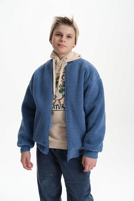 Трикотажный бомбер из бербер-флиса. Такой флис еще называют тедди, чебурашка, барашек. Мягкая кофта оверсайз застегивается на молнию. По переду два глубоких прорезных кармана. Воротник, манжеты рукавов и манжет низа выполнены из декоративной рибаны. Плюшевая толстовка из искусственного меха утеплена флисовым подкладом, благодаря чему ее можно носить в прохладную погоду весной и осенью. Универсальные цвета подойдут для повседневной носки в школу и на прогулку. Широкая размерная линейка подойдет как малышам так и подросткам.