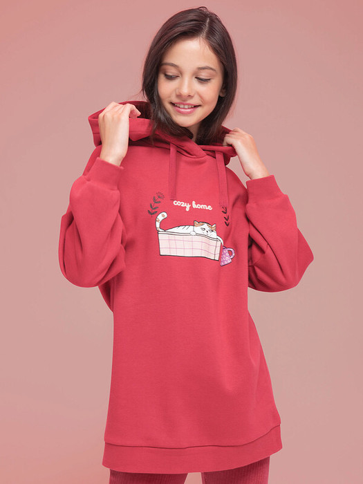 Худи детское удлиненное для девочки. Туника актуального оверсайз-силуэта со спущенным плечом подарит ребёнку комфорт и свободу движения. На рукавах красивые глубокие складки. Объёмные рукава — один из модных трендов сезона. По низу изделия и низу рукавов манжеты из эластичной рибаны (ткань в рубчик), они не растягиваются и сохраняют форму и отличный внешний вид надолго. Капюшон с двумя швами, что обеспечивает анатомически правильную форму и комфортную посадку по голове. Объём капюшона регулируется тесьмой, продетой в крупные люверсы. Капюшон двойной - швы не видно. Худи оверсайз с принтом на груди. Принт эластичный и прочный, без проблем переносит частые стирки. Милый принт изображает котика в корзине с чашкой, надпись переводится: «уютный дом». Худи для девочек неприхотливо в уходе. В составе ткани преобладает высококачественный хлопок — толстовка мягкая и прекрасно пропускает воздух, давая коже ребёнка дышать. Благодаря полиэстеру изделие легко стирается и быстро сохнет, сохраняет первозданную форму надолго. Туника представлена в двух трендовых цветах: красный и зелёный (оттенок хаки). Размерная линейка: 2 (92); 3 (98); 4 (104); 5 (110); 6 (116); 7 (122); 8 (128); 9 (134); 10 (140); 11 (146). Худи утеплённое подходит для девочек дошкольного и младшего школьного возраста, а также девочек-подростков. Идеально для детского сада, прогулок, активного отдыха, дома. Худи с капюшоном можно носить круглый год: прохладным летом, осенью и весной (демисезон), зимой. Стильный и практичный подарок дочери, внучке или сестре на День рождения и любой другой праздник.