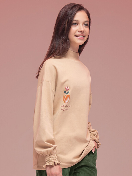 Детский свитшот для девочки из футера с начесом. Толстовка трендового свободного кроя со спущенным плечом подарит ребёнку комфорт и свободу движений. Оверсайз-свитшот дополнен воротником-стойкой, который обеспечивает дополнительную защиту шеи от холода и ветра. Воротник выполнен из эластичной рибаны (ткань в рубчик) — он прекрасно тянется, ребёнку удобно надевать и снимать свитшот, при этом воротник отлично сохраняет форму. Низ рукавов собран на тонкую резинку в несколько рядов, что придаёт изделию элегантности и женственности. Джемпер неприхотлив в уходе. В составе ткани  преобладает высококачественный хлопок — свитшот мягкий и великолепно пропускает воздух — кожа ребёнка дышит. Благодаря эластану изделие сохраняет первоначальную форму в течение долгого времени. Свитшот с принтом по переду и спинке. Милый принт с уютным настроением изображает вазочки с цветами, надпись переводится: «рецепт уюта: маленькие цветочки + большая любовь». Принты эластичные и прочные — без проблем переносят многочисленные стирки. Джемпер выполнен в нежном бежевом цвете, его просто комбинировать с любыми брюками, легинсами, джинсами. Размерная линейка: 2 (92); 3 (98); 4 (104); 5 (110); 6 (116); 7 (122); 8 (128); 9 (134); 10 (140); 11 (146). Свитшот с начёсом подходит девочкам дошкольного возраста, младшим школьницам и девочкам-подросткам. Его можно носить в детский сад, на прогулки, во время отдыха, а также дома. Свитшот детский идеален для круглогодичного применения: летом, осенью, зимой, весной и демисезон. Это стильный и практичный подарок дочери, внучке или сестре на Новый год и любой другой праздник.