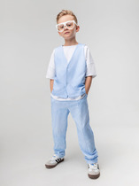 Детское худи для мальчика из материала футер-петля. Изделие свободного кроя оверсайз со спущенным плечом, углубленной проймой. Рукава и низ на манжете из риба. Капюшон на запахе, с люверсами и шнурками для регулировки.