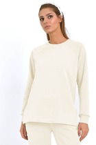 Свитшот женский без начеса. Толстовка расслабленного силуэта-кокон со спущенным плечом подарит вам комфорт и станет стильным дополнением гардероба. Спинка джемпера длиннее переда — актуальный модный тренд. Манжеты, отделка горловины и низа изделия выполнены из эластичной широкой рибаны (ткани в рубчик). Она не растягивается, отлично сохраняет форму, при этом свитшот удобно надевать и снимать. Модель неприхотлива в уходе. Оверсайз свитшот выполнен из ткани «французский рубчик» — в составе ткани преобладает высококачественный хлопок, ткань дышит и приятна на ощупь. Полиэстер помогает сохранить цвет и первозданный внешний вид надолго. «Французский рубчик» придаёт модели актуальный объём. Женский свитшот выполнен в в универсальных цветах, который легко сочетать с любыми брюками, джинсами, юбками, платьями — можно создать много красивых образов. Толстовка декорирована небольшим объёмным принтом в виде первой буквы логотипа бренда. Стильная фишка модели — в боковых швах разрезы на металлических молниях. Однотонный оверсайз-свитшот — базовый элемент повседневного женского гардероба. Свитшот без начеса можно носить круглый год. Помните о правильном уходе за изделием: рекомендуется стирать при температуре не выше 30 °C, без предварительного замачивания, с изнанки. Это поможет сохранить качество и цвет свитшота на длительное время.